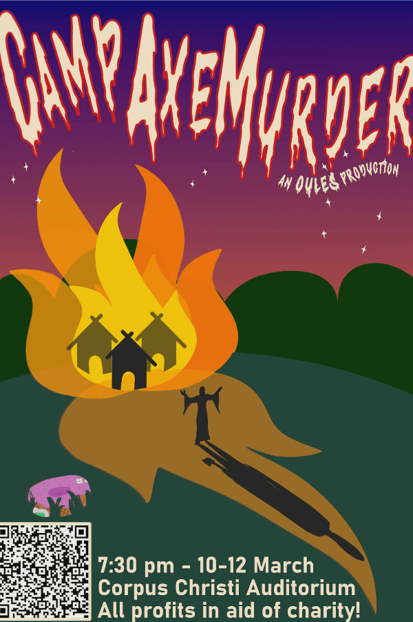 Auditions for this term’s show Camp AxeMurder will be at the end of 0th week.